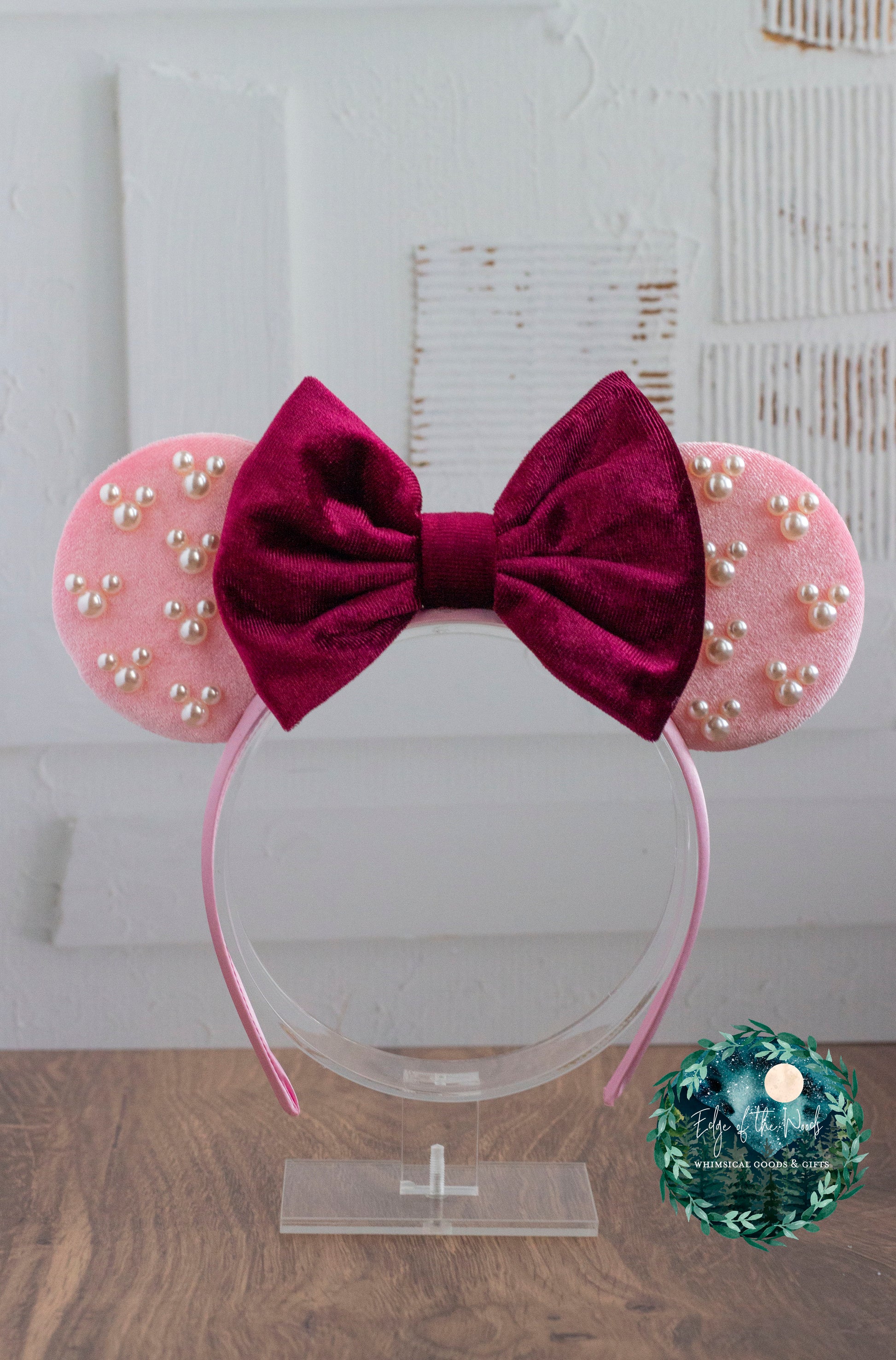 Velvet Mouse Ears with pearl hidden mouses on ears