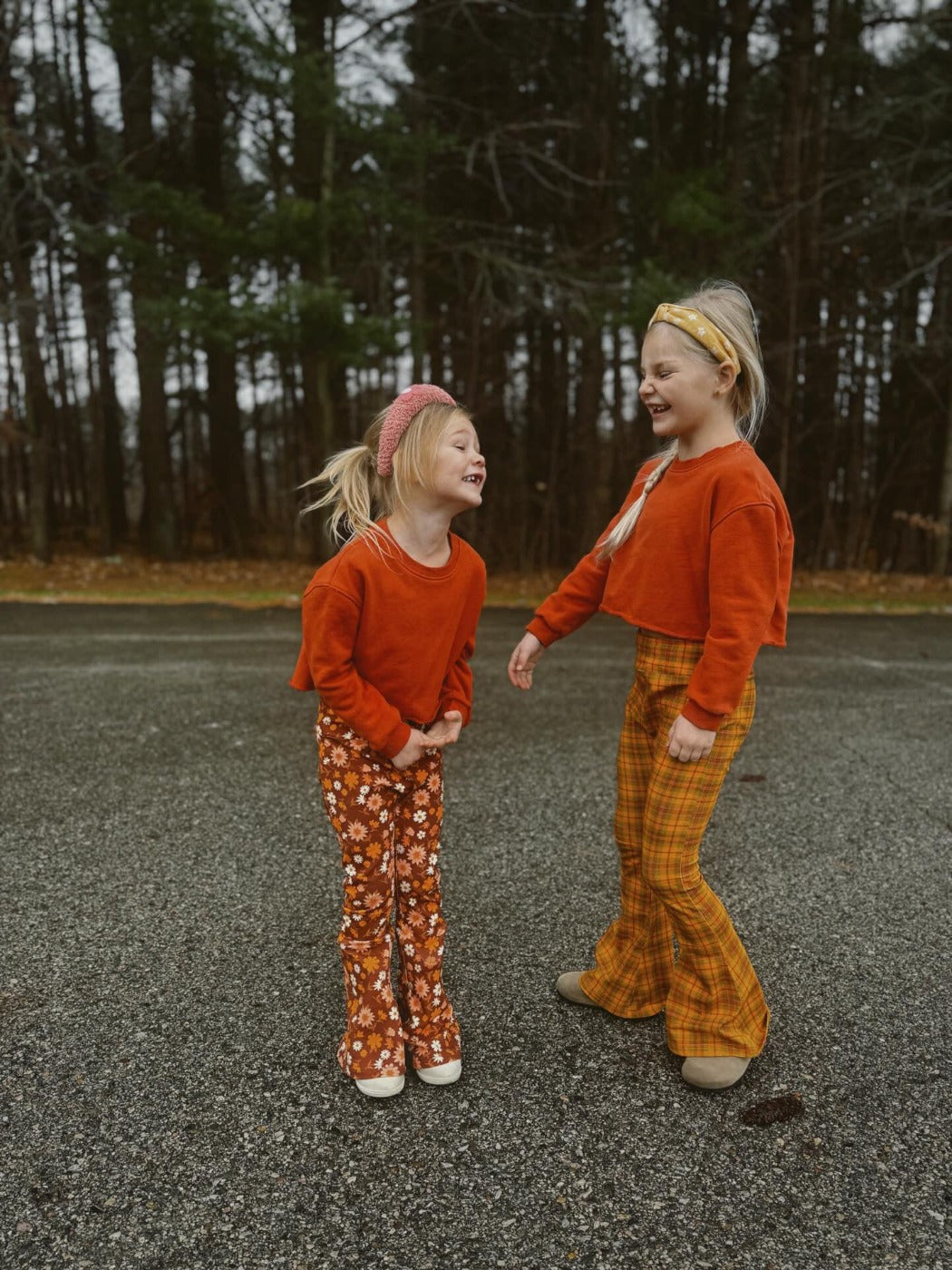 Show her retro spirit with these fun plaid 70s girl’s bell bottom leggings. Pair these fun bell bottom pants with their favorite graphic tee or our solid color ruffle shirts.