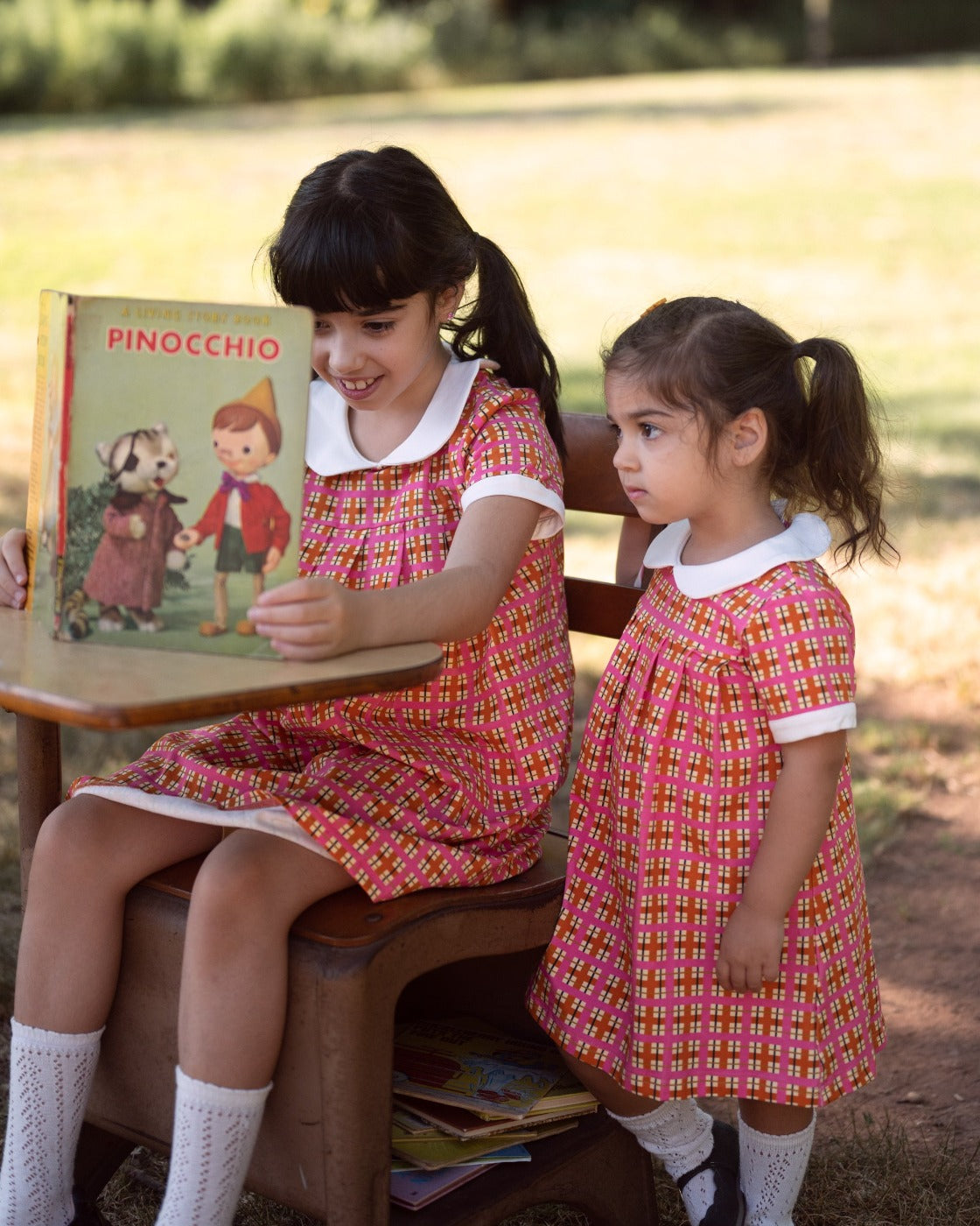 The retro pink plaid pleated peter pan collar dress is the perfect vintage-inspired piece for your little girl. Featuring a vibrant and playful plaid print and the sweetest peter pan collar, your little one will be irresistibly cute. Not only will they look absolutely cute in this timeless piece, they will be so comfortable since it's made from a stretchy cotton spandex blend material. What's better than sweet vintage style with modern comfort for a little one? Sizes 3-6 months-18-24 months come with a matching diaper cover.